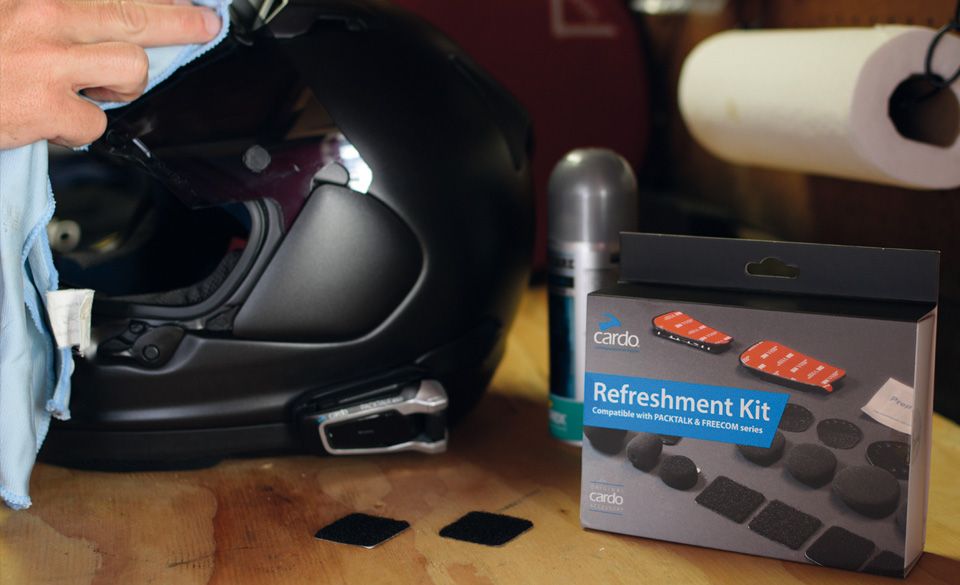 Por este motivo Cardo pone a su disposición el kit de recambios Refreshment Kit que incluye todo lo que necesita para darle a su sistema de comunicación una renovación total y que esté como nuevo, como el día que lo instaló por primera vez en su casco. Ya sea porque ha cambiado de casco y porque necesite una nueva instalación, o porque las esponjillas y los adhesivos de velcro necesiten una renovación, el nuevo kit de recambios Refreshment Kit será justo lo que necesita.