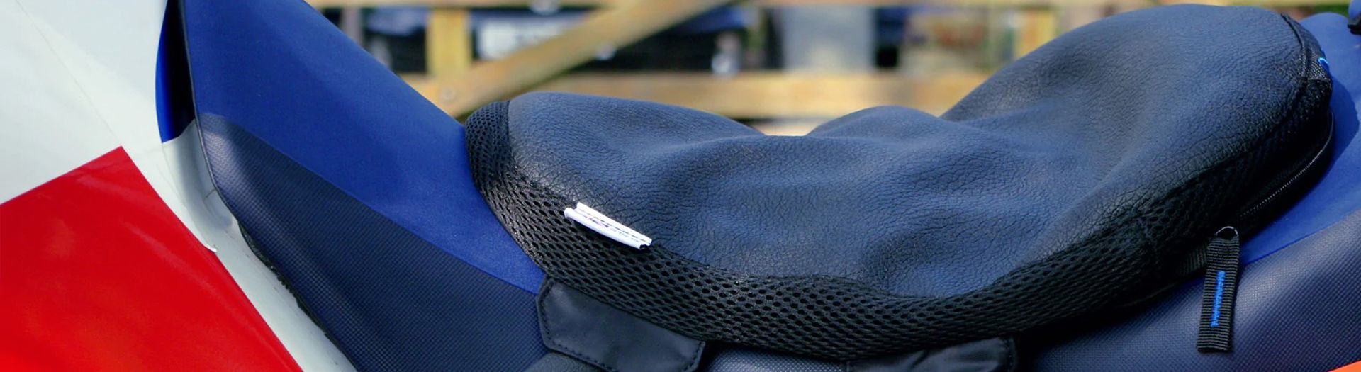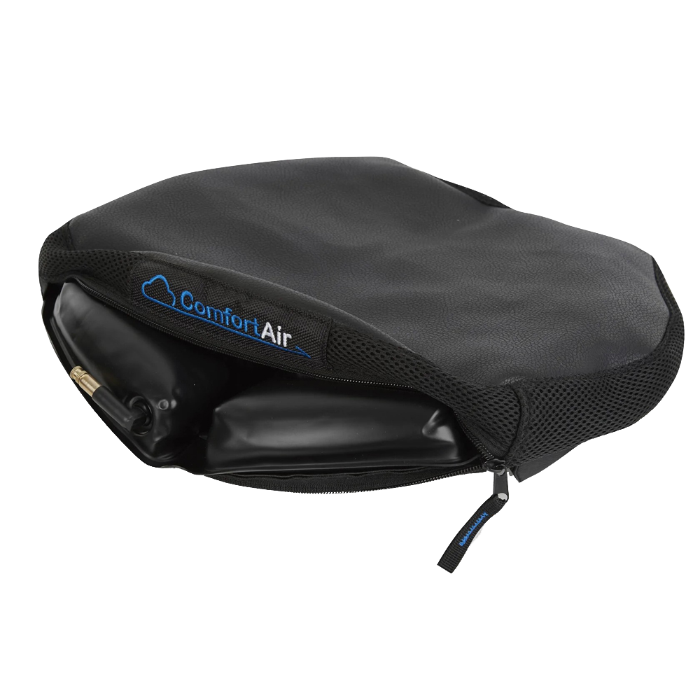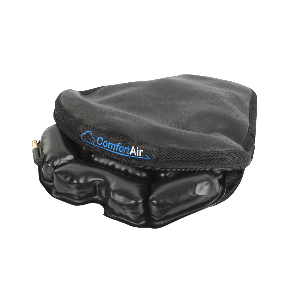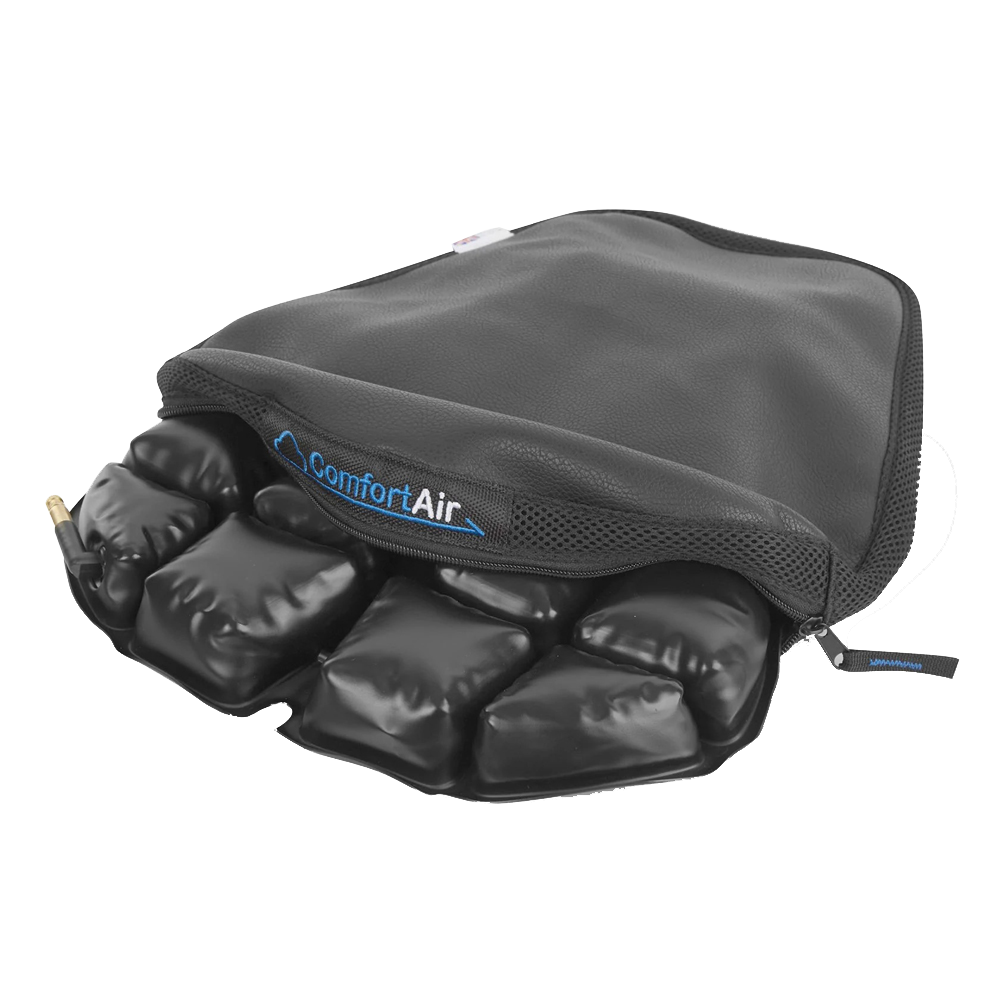 Los cojines ComfortAir para asiento de moto han sido especialmente diseñados para distribuir y disipar uniformemente los puntos de presión que pueden ocurrir como resultado de estar sentado sin moverse durante mucho tiempo. Su tecnología de flotación de aire se desarrolló originalmente, y se aprobó médicamente, para ayudar a brindar comodidad a las personas que están en cama o en silla de ruedas.