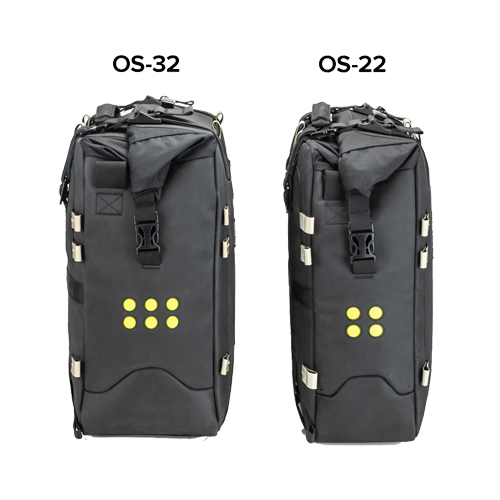 Su color blanco no es casual, ya que de esta forma será mucho más fácil encontrar pequeños objetos en su interior. Disponen de una base semi rígida para una mayor estabilidad y una mejor fijación a la plataforma. Mediante varias cintas de ajuste y cuatro puntos de compresión podremos ajustar cada alforja según nuestras necesidades y la cantidad de equipaje que llevemos. Además disponen de multitud de puntos de anclaje para fijar bolsas adicionales OS PACK de 18, 12 o 6L de capacidad si fuera necesario.