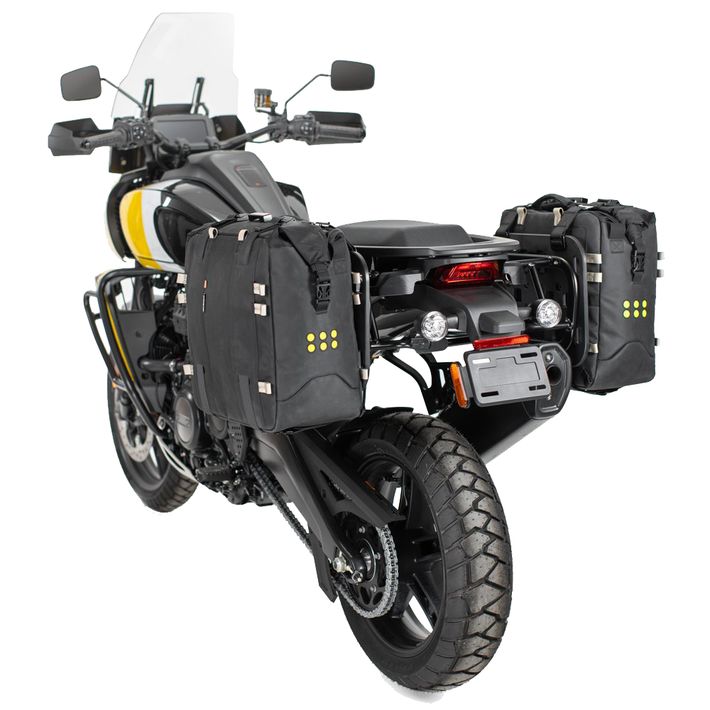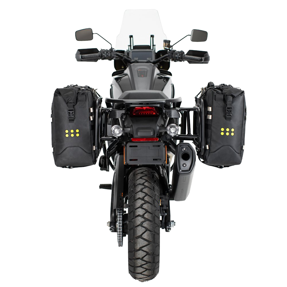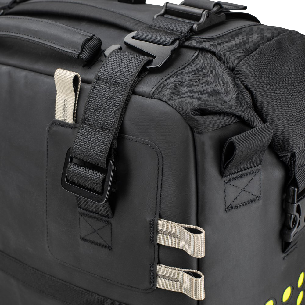 Su color blanco no es casual, ya que de esta forma será mucho más fácil encontrar pequeños objetos en su interior. Disponen de una base semi rígida para una mayor estabilidad y una mejor fijación a la plataforma. Mediante varias cintas de ajuste y cuatro puntos de compresión podremos ajustar cada alforja según nuestras necesidades y la cantidad de equipaje que llevemos. Además disponen de multitud de puntos de anclaje para fijar bolsas adicionales OS PACK de 18, 12 o 6L de capacidad si fuera necesario.