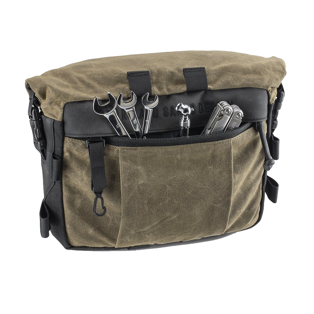 Fabricada en algodón encerado exclusivo de RSD junto con Cordura 1000D y un refuerzo de hypalon superresistente para dar un aspecto clásico con un toque técnico moderno. El compartimento principal es un Drypack impermeable con cierre enrollable, ideal para guardar lo esencial y mantenerlo seco. Un bolsillo frontal de acceso rápido con divisores y clip para llaves, mantiene los objetos pequeños a mano.
