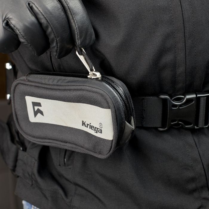 El bolsillo adicional para mochilas de moto Kriega Harness Pocket permite un acceso rápido a lo esencial en plena ruta... Bolsillo auxiliar ideal para un teléfono móvil, cámara pequeña, gafas de sol, llaves, etc. Simplemente se fija mediante cinchas de velcro en el tirante de la mochila, riñonera o la correa de las bolsas Kriega Messenger.