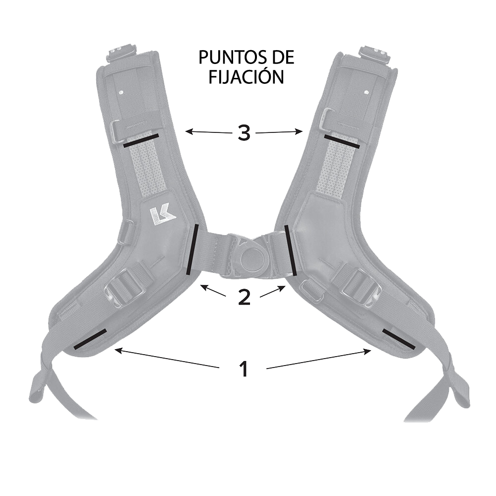 • Fabricado en Cordura 1000D + Nylon 420DLos bolsillos se sujetan de forma segura a cada lado del arnés con presillas y clips de bloqueo e incluyen una hebilla de arnés adicional para mejorar la estabilidad de la mochila y la distribución del peso.