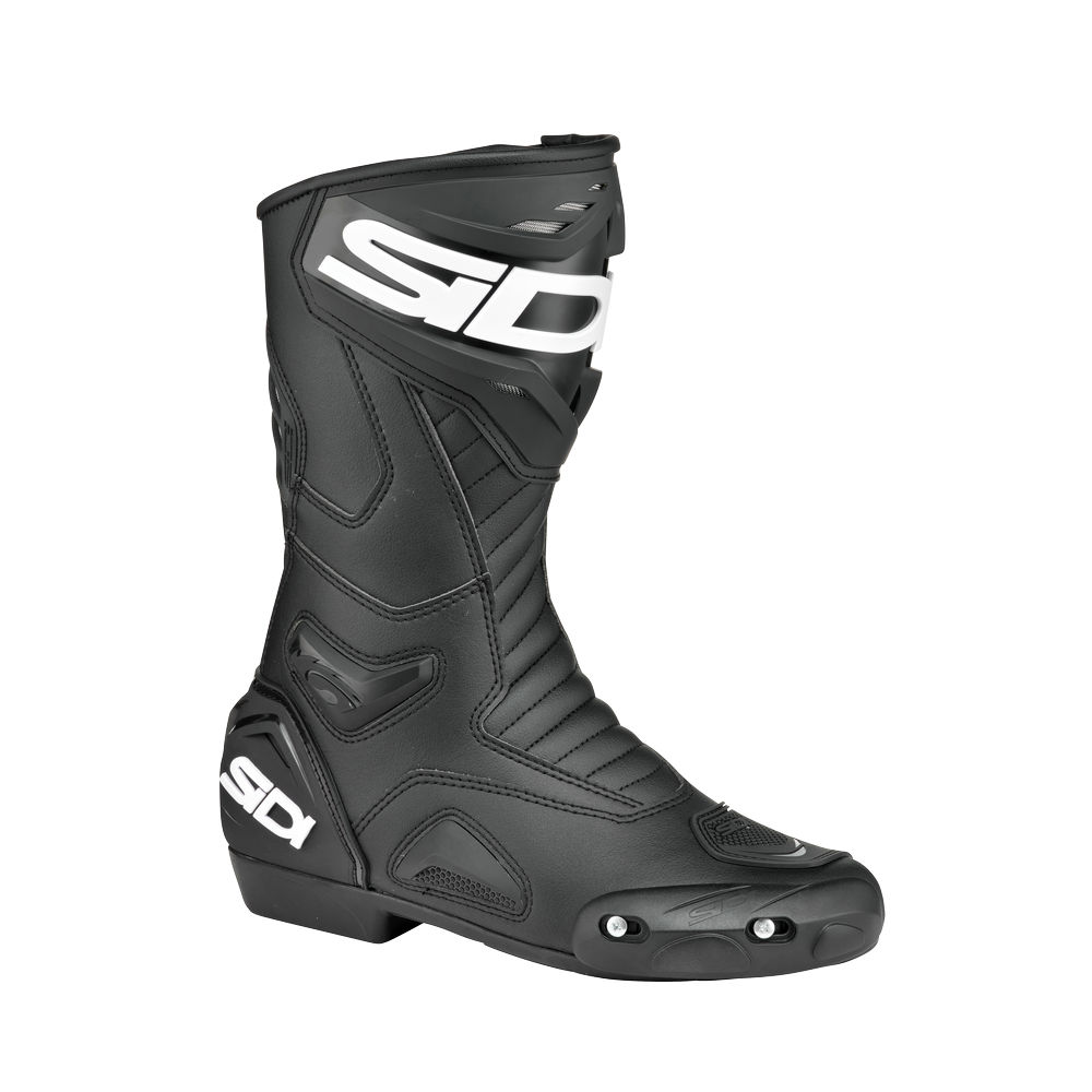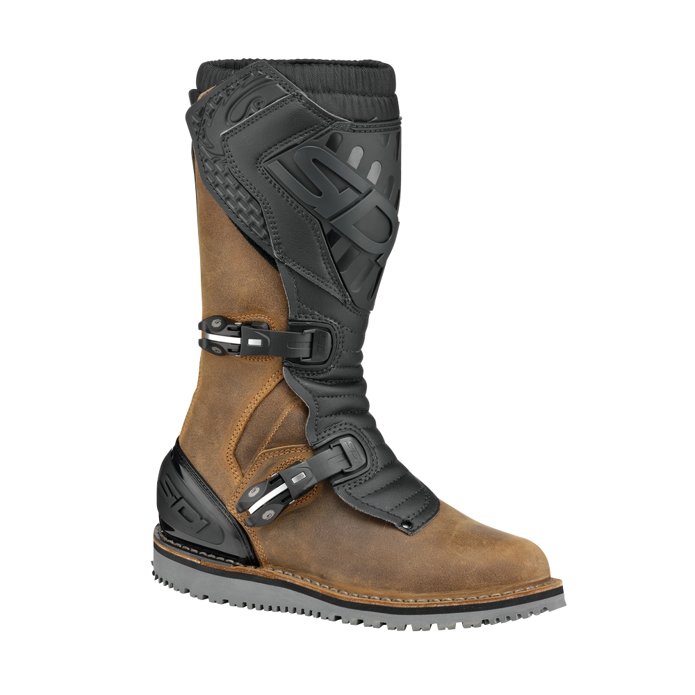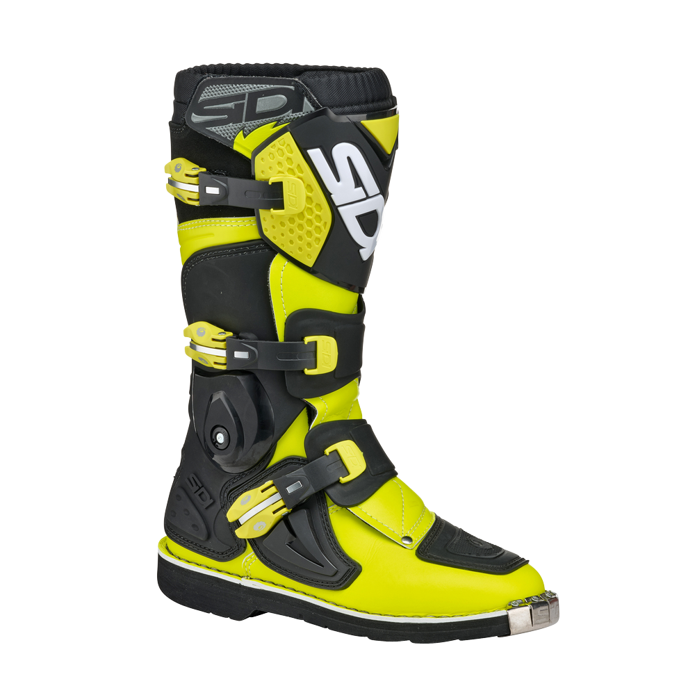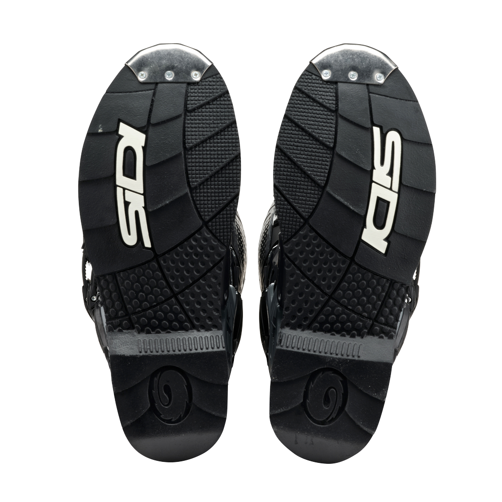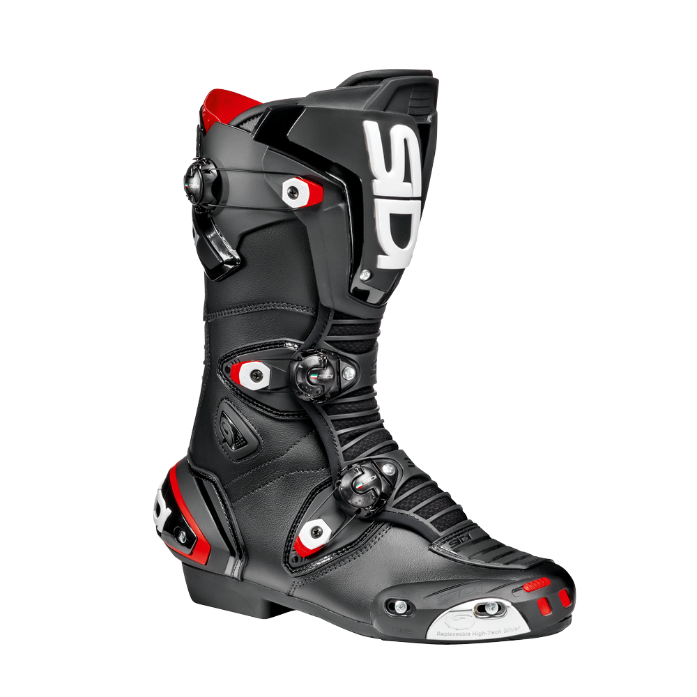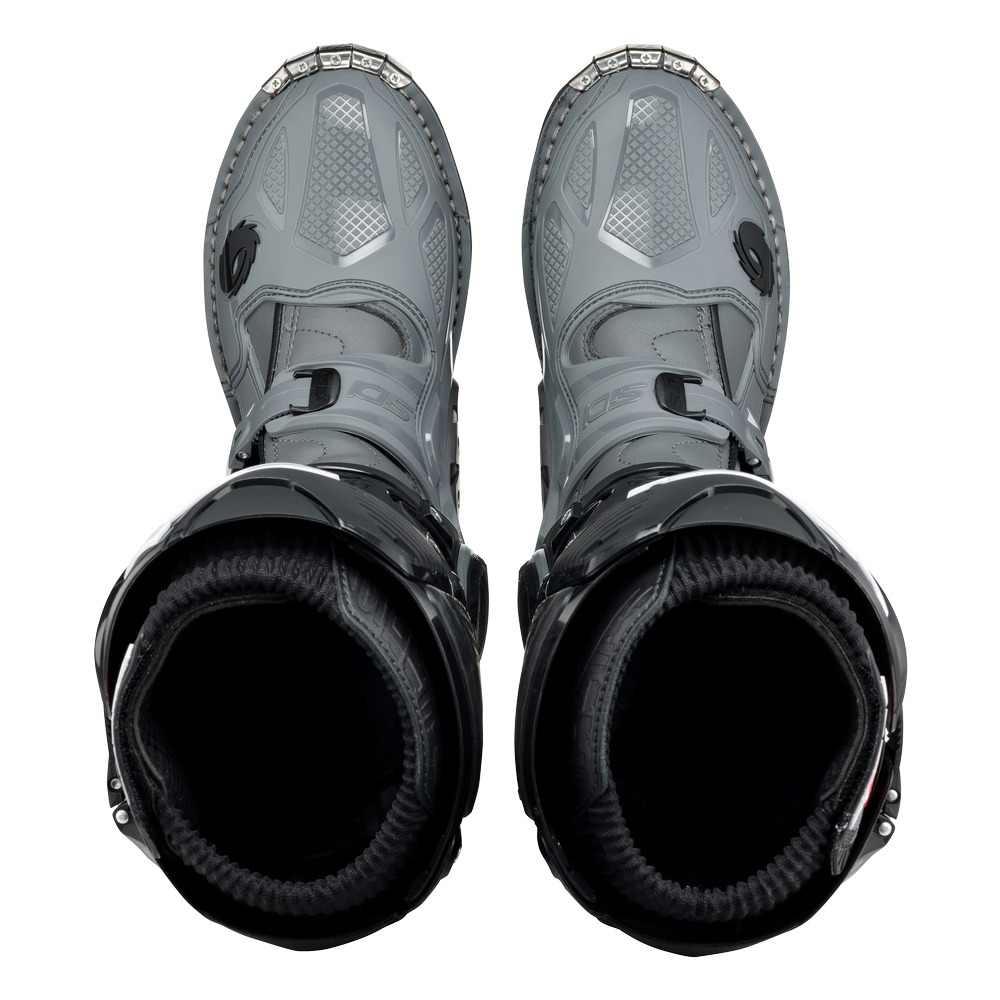 • El sistema exclusivo y patentado por SIDI, permite ajustar el diámetro de la CROSFIRE 3 SRS en la zona del gemelo hasta 3cm. Este sistema, juntamente con las tiras de ajuste más largas, representan un avance en términos de comodidad. La parte interior de la bota está realizada con 2 materiales distintos; uno en plástico rígido para ofrecer soporte a la bota y otro resistente al calor para proteger la pierna del piloto del calor que desprende el escape. Todos los componentes del sistema son reemplazables