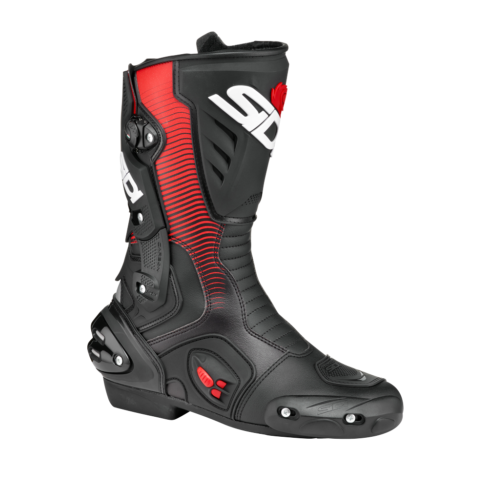 • Sistema FLEX SYSTEM que facilita la flexión de la bota y los cuatro cierres flotantes permiten un ajuste personalizado a cada piloto sin importar la complexión física o el uso o no de rodilleras.