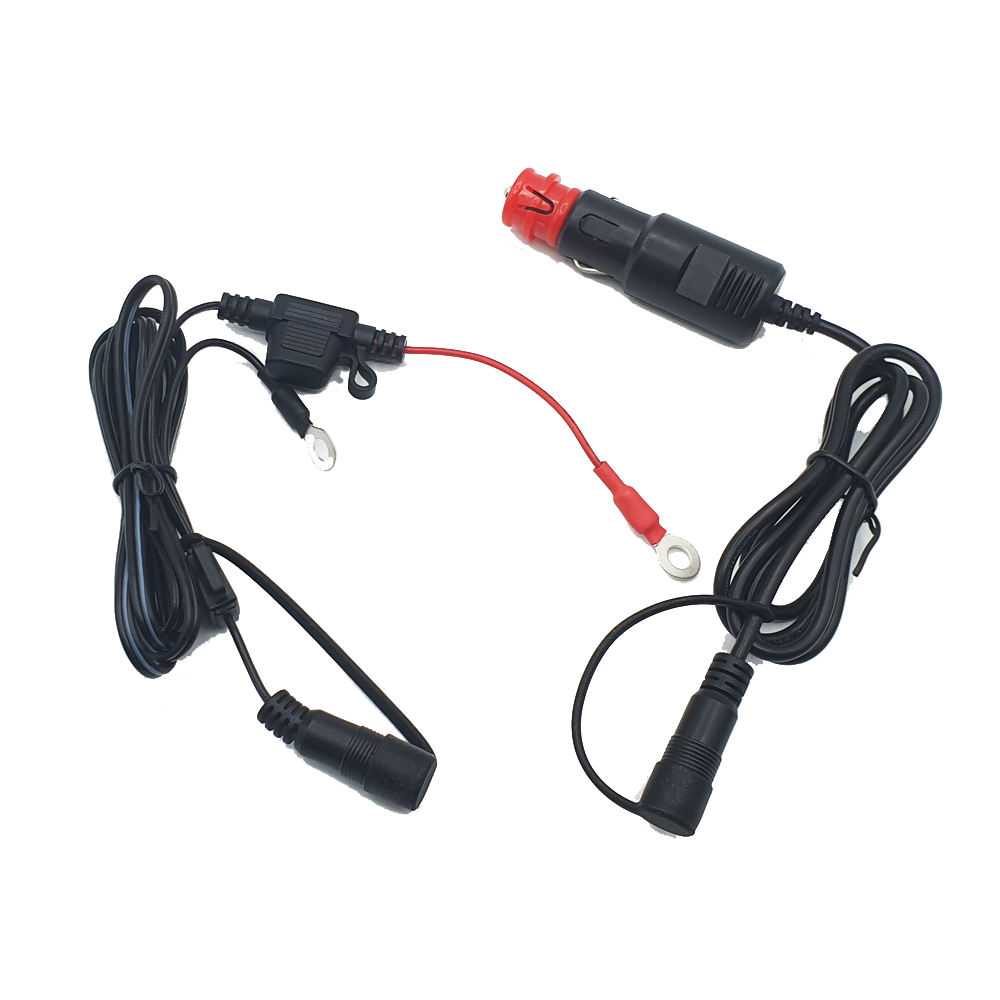 - Conector directo a batería de 12v con fusible de 10a de 132cm de longitud