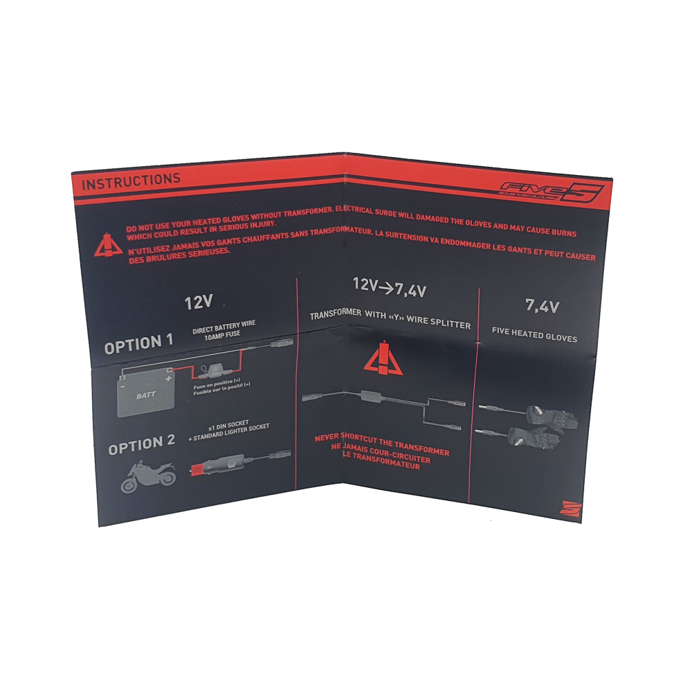 Si dispones de unos guantes de moto calefactables Five HG-1 o HG-3 y necesitas una mayor autonomía durante tus rutas invernales para mantener las manos calientes durante todo el día, estás de enhorabuena. Five nos presenta el cargador para moto para guantes calefactables Five HG.