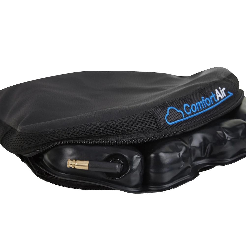 El innovador cojín ComfortAir para asiento de moto es un cojín de flotación de aire fácil de instalar que ofrece una comodidad de nivel superior, sin importar cuán largo o lleno de baches sea su viaje. Utiliza tecnología de flotación de aire médicamente probada para distribuir su peso y presión sobre todo el asiento de la motocicleta, reduciendo los "puntos calientes" que causan calor y dolor y pueden crear una distracción durante la conducción. Las celdas de flotación de aire de última generación de ComfortAir también funcionan como mini amortiguadores, lo que reduce la vibración y la sensación resultante de "adormecimiento" de los músculos.
