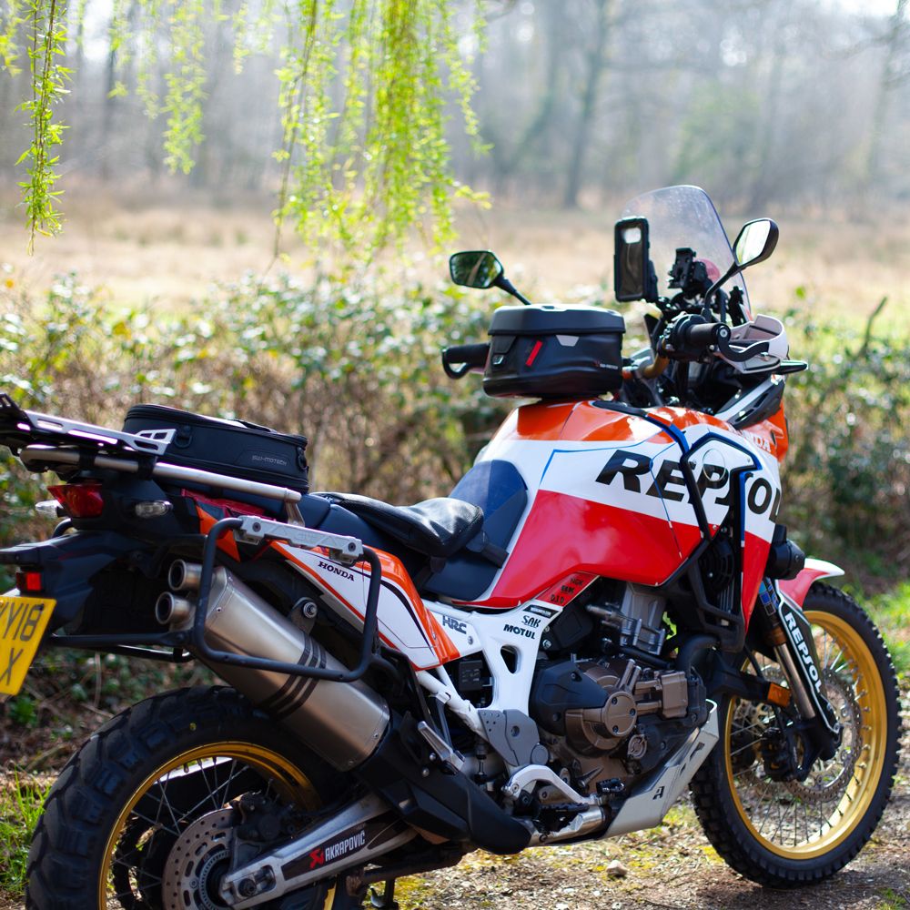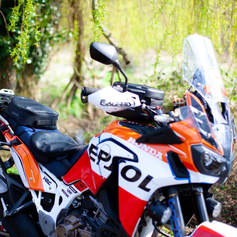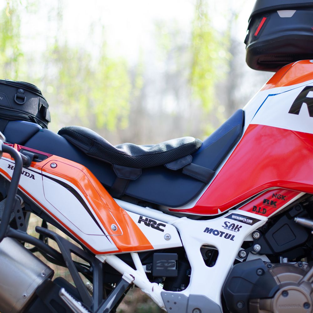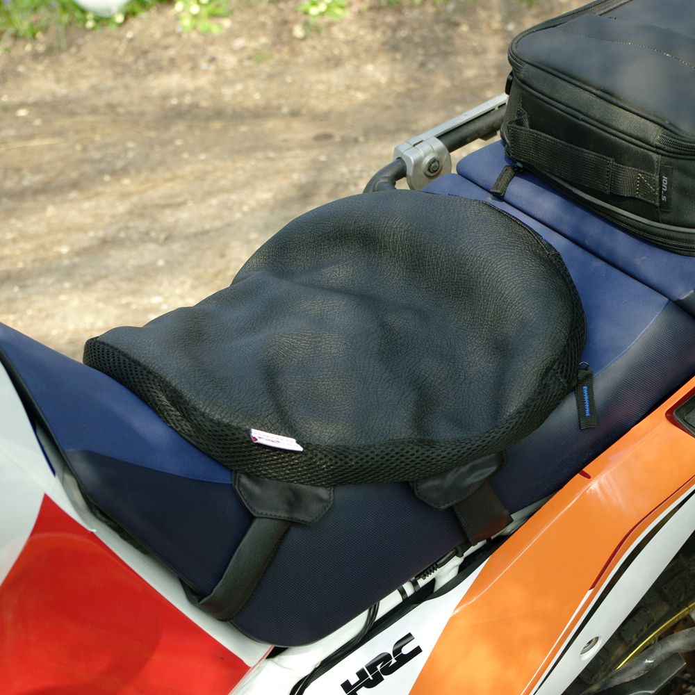 Dispone de un frente angosto para que coincida con el perfil del asiento de la mayoría de las motocicletas de aventura de menos de 1000 cc, motocicletas deportivas grandes y pequeñas, así como un frente ahusado para minimizar la presión no deseada entre las piernas del conductor. Un sistema de correas elásticas, resistentes y ajustables garantizan un ajuste seguro en el asiento original de su moto.