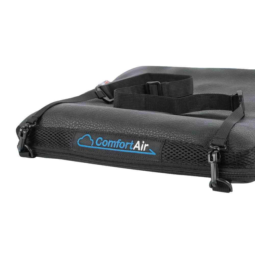 ¡Ahora también puede beneficiarse de la sensación de ComfortAir aunque no conduzca una moto! Este cojín presenta una gran forma rectangular para que coincida con el perfil del asiento de la mayoría de los asientos, ya sea en un estadio, automóvil, camión, avión, silla de oficina o silla de ruedas.