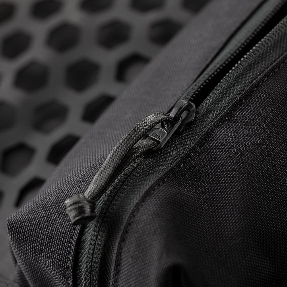 - Espacio para cosas pequeñas: un bolsillo de malla Hypalon con cremallera YKK y un bolsillo interior proporcionan un lugar de almacenamiento separado para artículos más pequeños: fusibles, bridas, alambre de seguridad, cinta, etc.