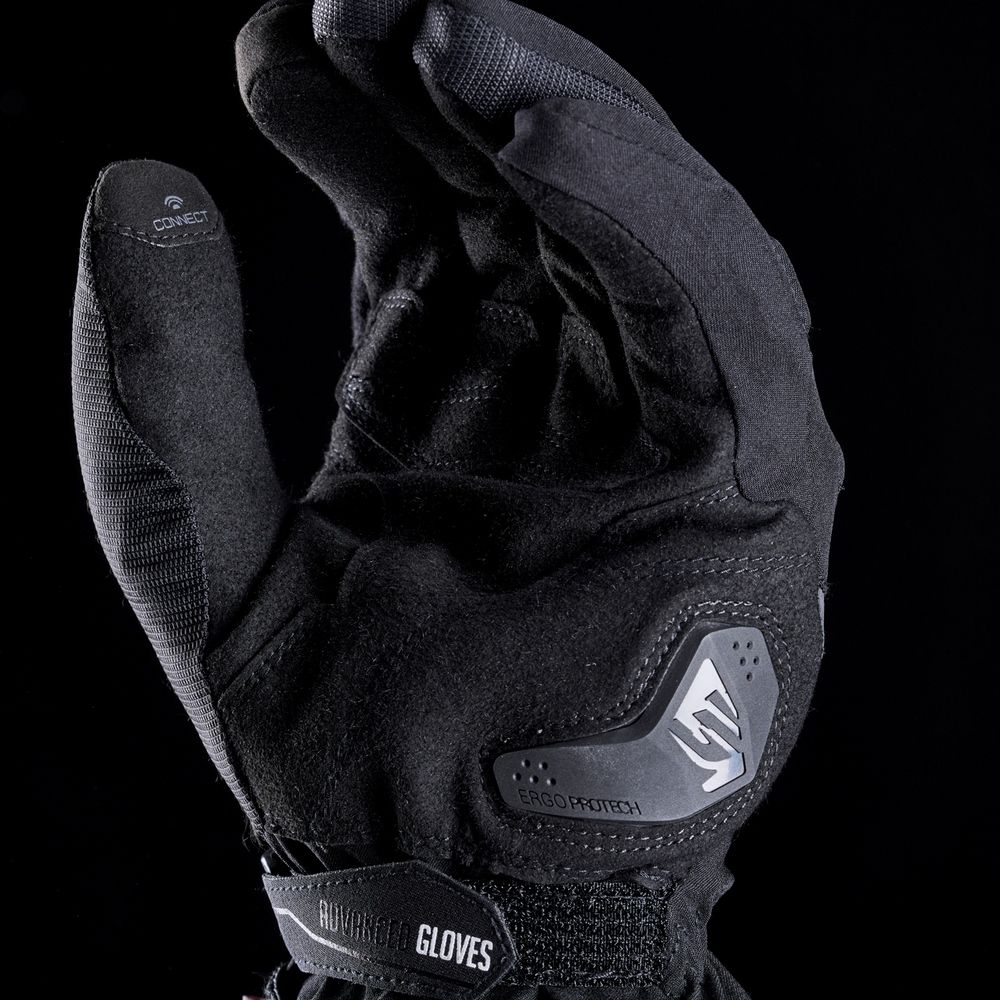 Colocado en el puño o en el dorso de la mano derecha, según modelo de guante HG el botón DUAL CONTROL te permite activar tus guantes y ajustar el nivel de calor, pasando por los tres niveles simplemente presionando repetidamente con el dedo índice izquierdo. Los dos guantes están conectados entre ellos mediante ondas electromagnéticas.