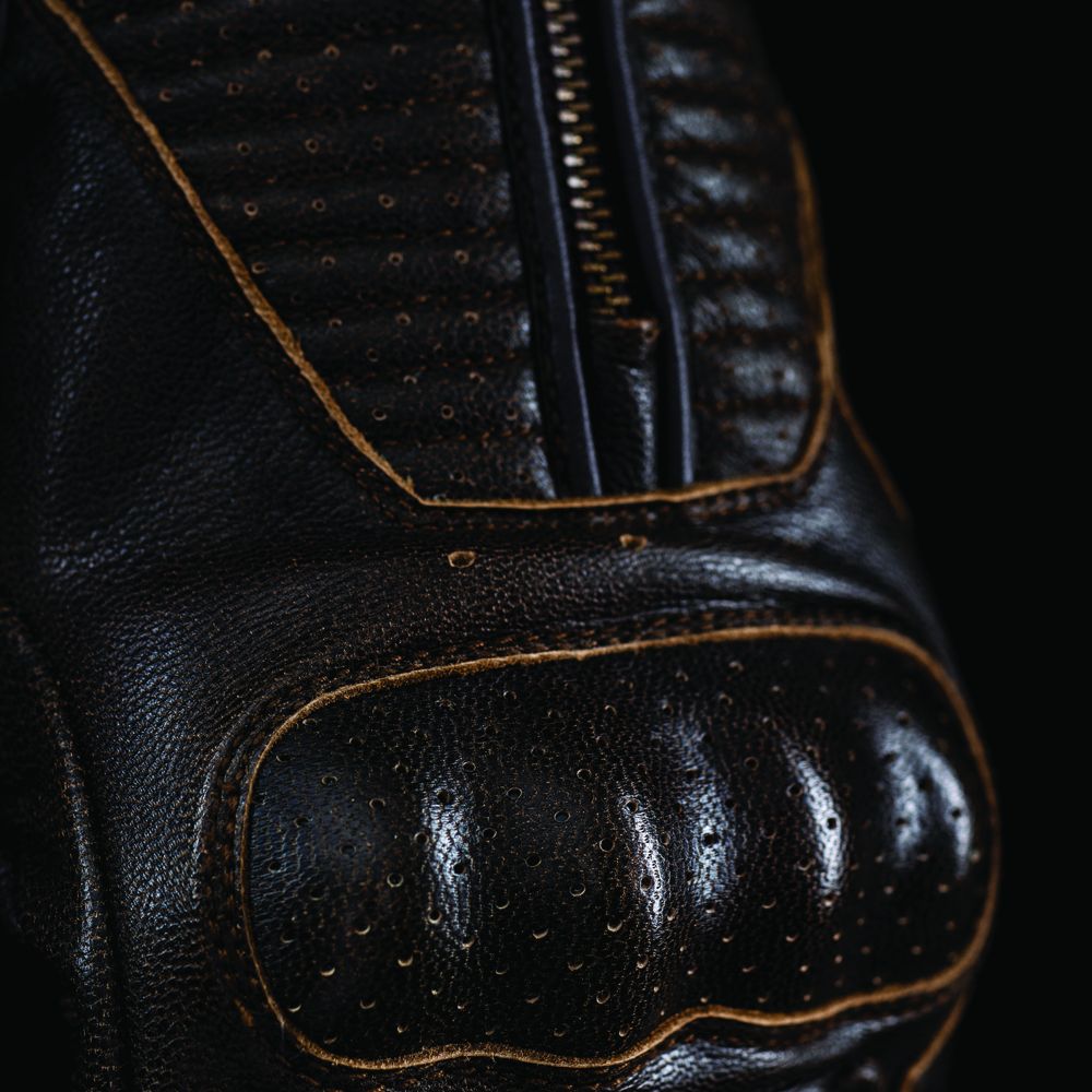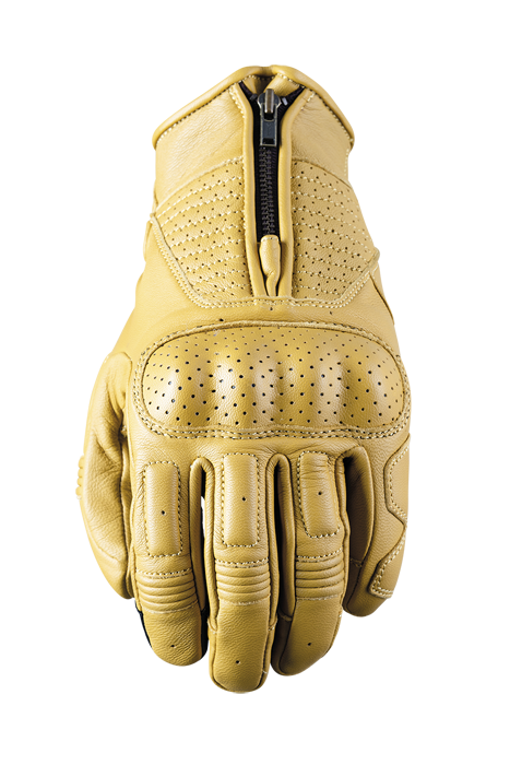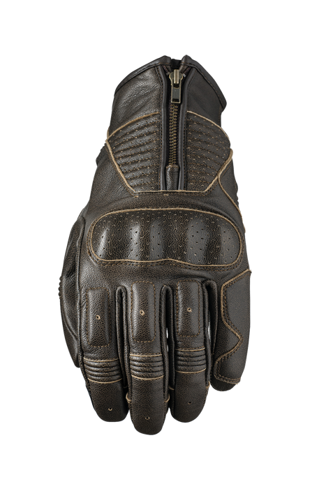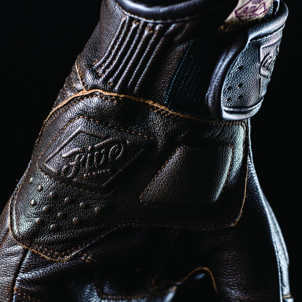El guante de moto Five Kansas destaca como nuestro guante tipo Custom / Cafe Racer con más protección disponiendo de una carcasa protectora metacarpiana de una pieza insertada debajo del cuero y varios refuerzos en las zonas más expuestas. Además ofrece una gran comodidad y una capacidad de ajuste y sensibilidad táctil excepcionales a los mandos de la motocicleta, debido entre otros motivos, a su costura externa. Sus innumerables detalles, refuerzos de confort y pespuntes, doble cierre con cremallera y cuero con solapa de velcro o su increíble nivel de acabado, hace que sea una pieza que los amantes del cuero apreciarán sin descuidar su seguridad.