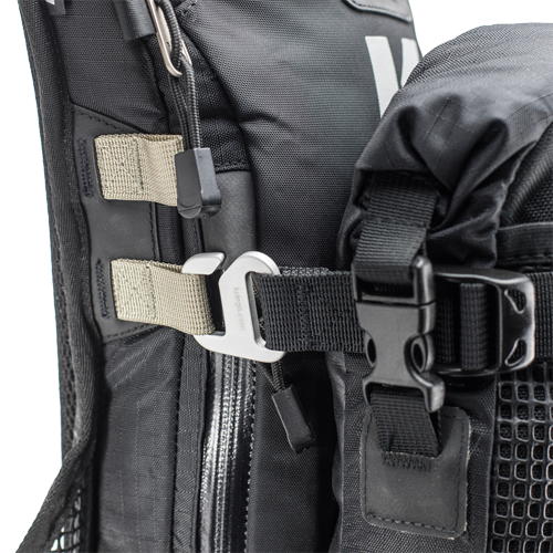 Incorpora el sistema de arnés Quagloc-lite de Kriega, orientado hacia la parte exterior de las axilas proporcionando total libertad de movimientos. Una correa de ajuste opcional en cintura aporta una mayor estabilidad de la mochila en condiciones de conducción extrema.
