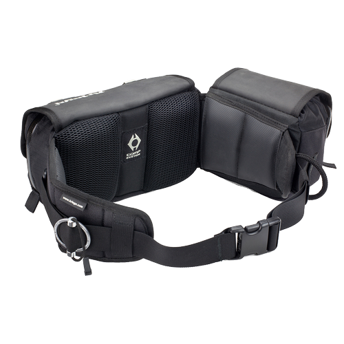 Su ajuste mediante una anilla especial establece la tensión necesaria en la cintura en cuestión de segundos. Una vez liberada la tensión mediante la anilla, es posible mover la riñonera libremente sin necesidad de tener que quitársela.