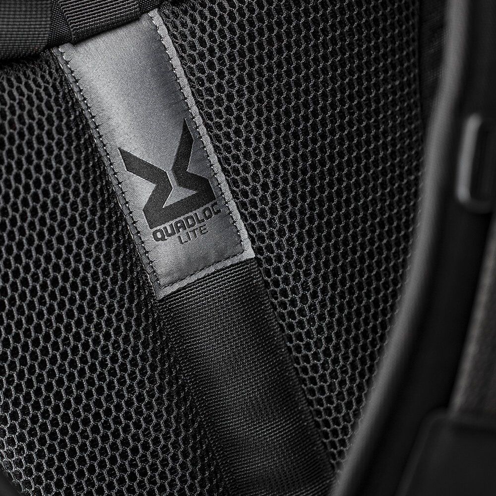 • El arnés Quadloc-Lite transfiere el peso de los hombros al pecho y al cuerpo, brindando comodidad durante todo el día