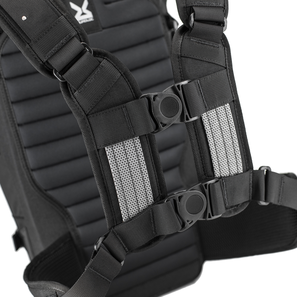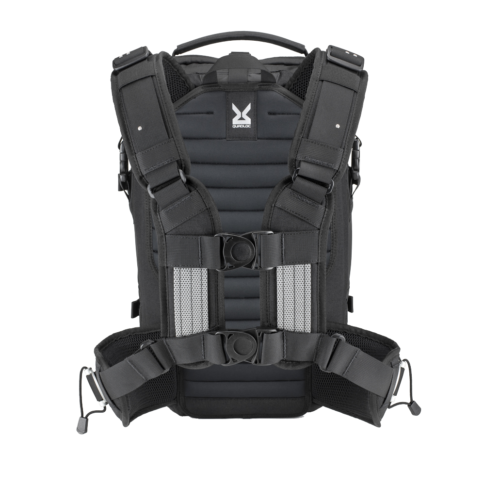 • El arnés Quadloc transfiere el peso de los hombros al pecho y al cuerpo, brindando comodidad durante todo el día, incluso con cargas pesadas