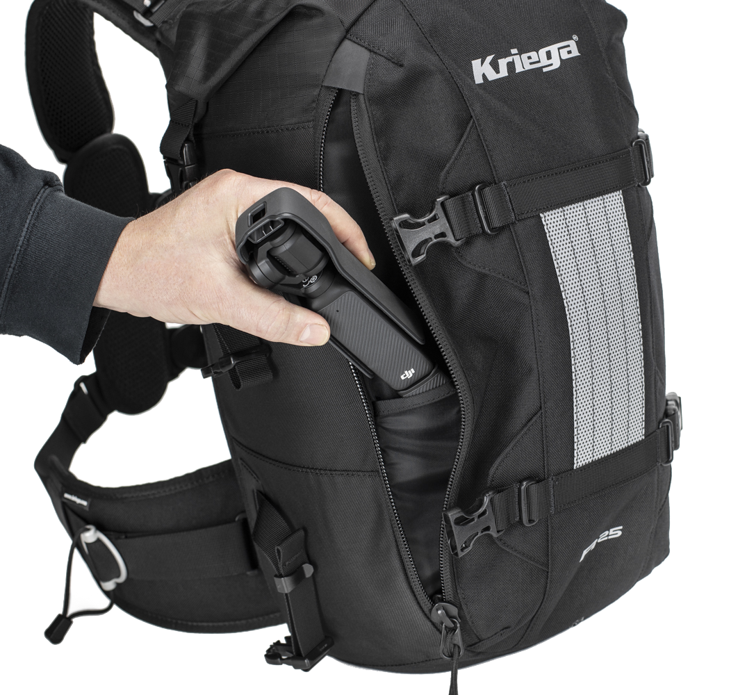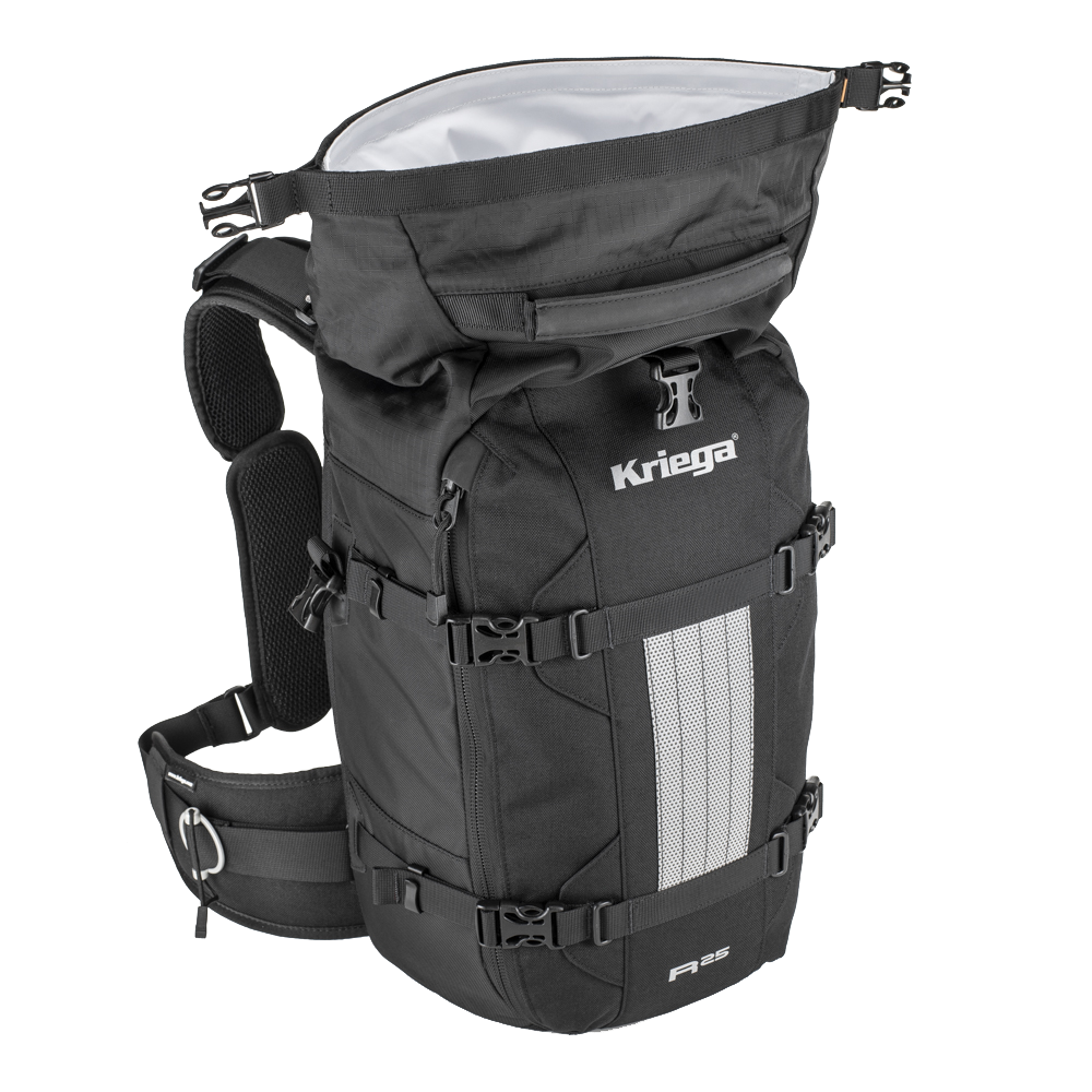Desde su lanzamiento, la mochila de moto Kriega R25 BackPack ha sido muy popular entre los viajeros más exigentes para largos trayectos que viajan bajo cualquier condición climática. Con esta nueva versión de la R25, la mochila ha sido mejorada para que sea más útil en el día a día. Además de mantener el famoso sistema de ajuste en pecho Quadloc, ahora el compartimento principal de la mochila es 100% impermeable mediante cierre enrollable y forro interior desmontable.