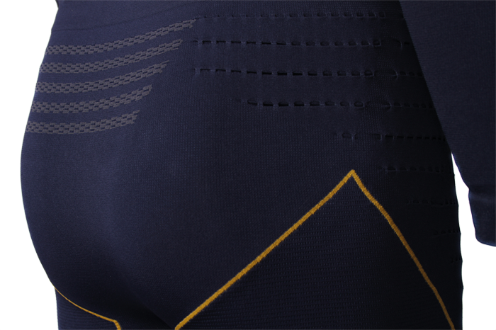 Estas prendas precisas tienen 3 estructuras técnicas, producidas en un tejido sin costuras. La complejidad del punto significa que el proceso de producción tarda tres veces más. La recompensa es una prenda técnicamente superior y con propiedades duraderas.