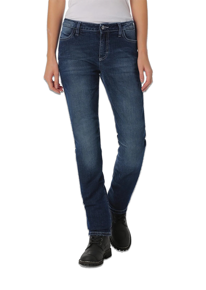 Pantalón vaquero de moto de mujer PMJ NEW RIDER LADY, para aquellas motoristas que buscan simplicidad pero sin olvidar la seguridad y la protección.
