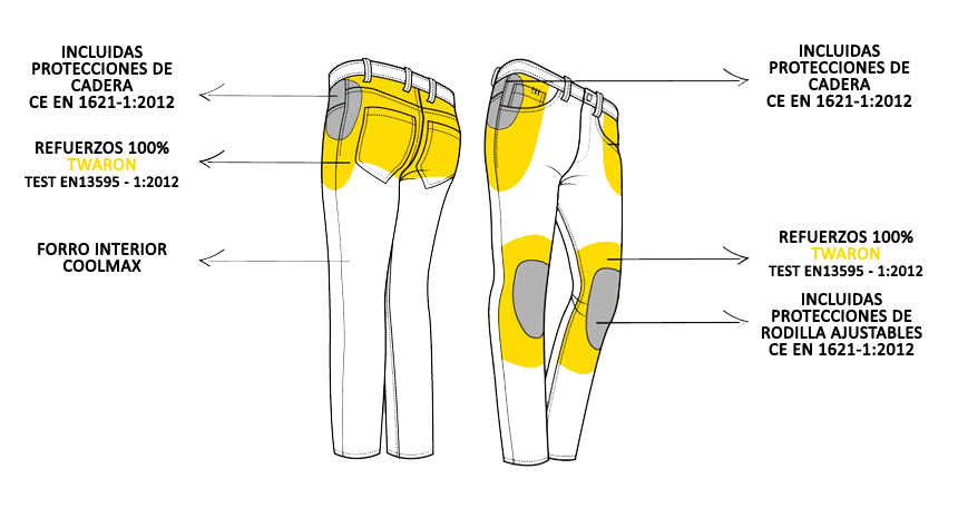 Pantalón vaquero de moto PMJ CAFE RACER, revolucionario en detalles, apariencia y comodidad. Un pantalón atemporal para los amantes de las motos clásicas y café racer.