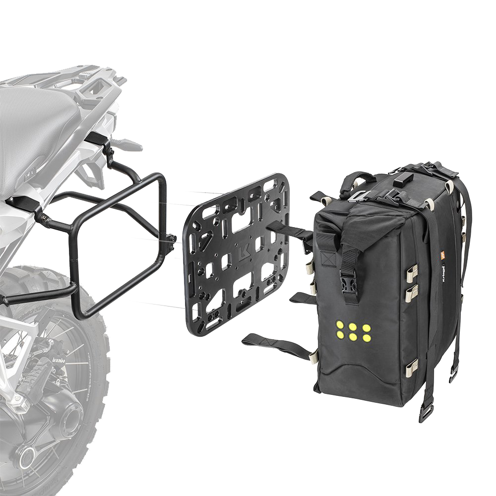 El diseño de la plataforma tiene la ventaja de permitir el ajuste seguro de alforjas, una alternativa mucho más segura al equipaje duro tradicional. OS-PLATFORM, que se suministra con una garantía de diez años, también es de ajuste universal, por lo que podrás conservar el equipaje resistente incluso cuando cambies de modelo de moto o de soporte para maletas.