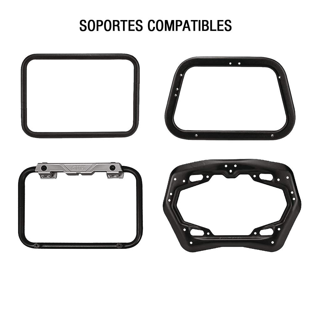 Con el par de plataformas se incluye un kit de accesorios para montar en soportes para maletas tubulares de 16 a 19 mm con forma de aro plano estándar y portaequipajes no tubulares del fabricante SW-Motech.