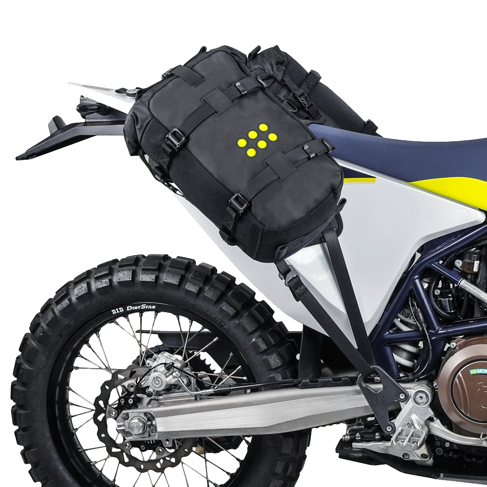 El soporte de equipaje de moto Kriega Overlander-S OS-Base KTM 690 / Husqvarna 701 / GasGas 700 ha sido diseñado específicamente estos modelos de motocicletas de aventura. Una nueva forma a medida y correas de Kevlar con una longitud exacta para un ajuste perfecto en la moto sin necesidad de protección térmica para el escape. Un innovador sistema modular para alforjas que se adapta a prácticamente cualquier moto trail o enduro sin la necesidad de soportes para maletas metálicas. Se trata de un "arnés sobre el asiento" que permite que las bolsas OS-6, OS-12 u OS-18 puedan utilizarse como alforjas.